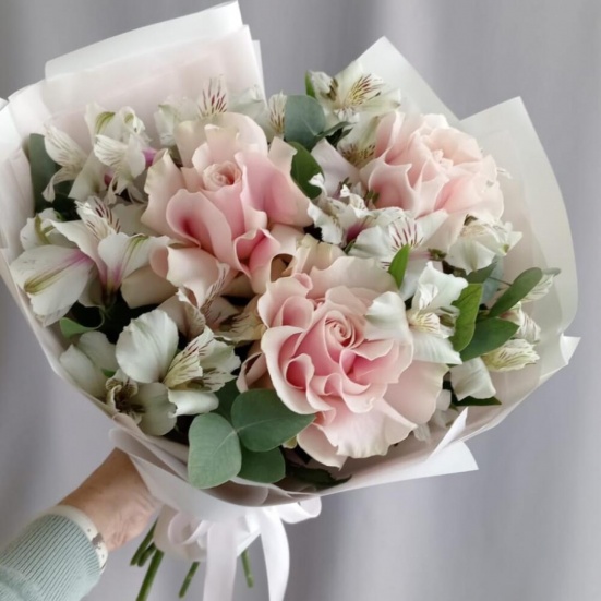 Букет фантастический. Пахнет свежими розами, а то бывает купишь где-нибудь и ничем не пахнет. Покупался на день рождения, имениннику понравился. Надеюсь простоит долго и будет радовать глаз. Спасибо