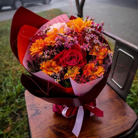 Решил внезапно приятно удивить супругу пока она на работе. Заказал ей тут букет прям на работу. Курьер доставил во время. Жена пришла домой счастливая с шикарным букетом.