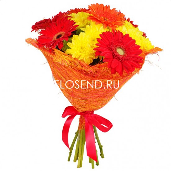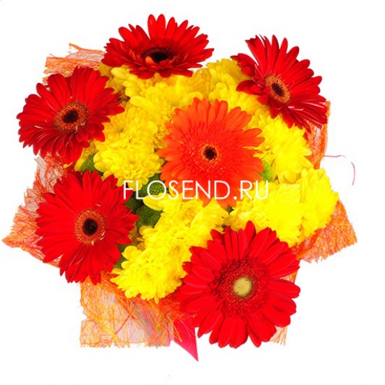 Букет «7 красных гербер и 4 хризантем» в Костроме