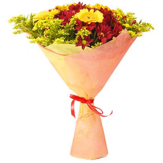 Букет «5 гербер, 5 хризантем, 5 солидаго» в Костроме