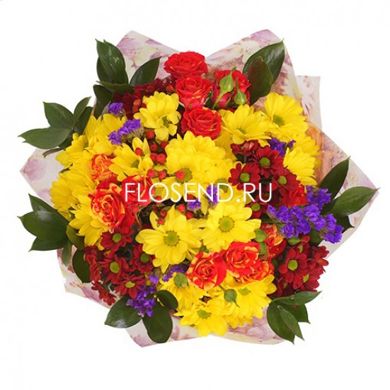 Букет с хризантемами и другими цветами