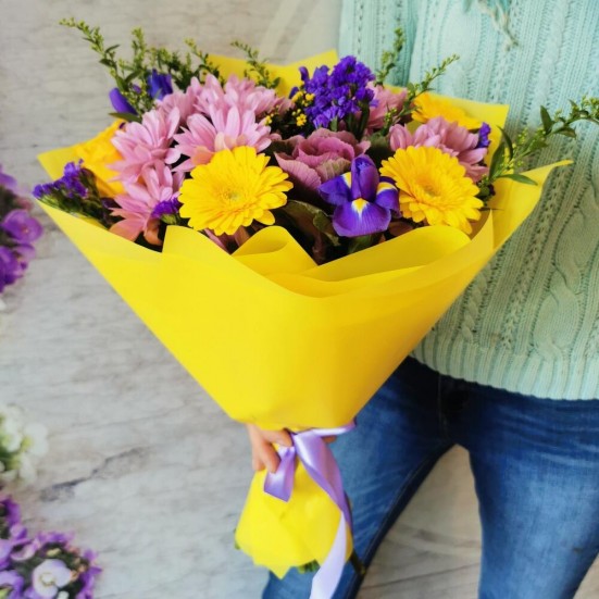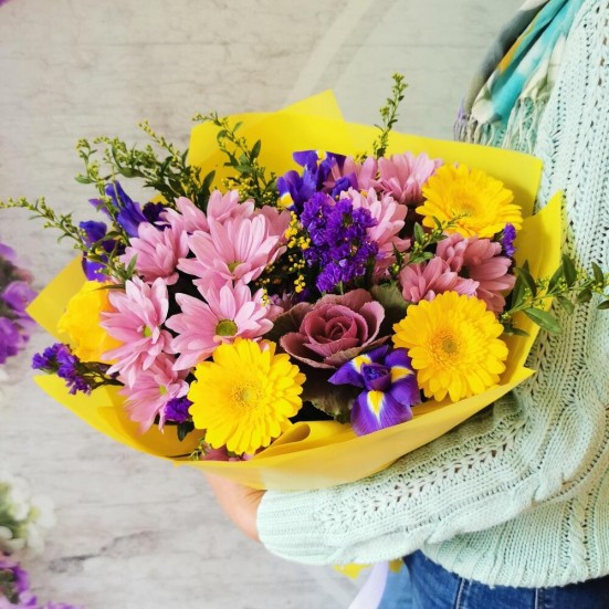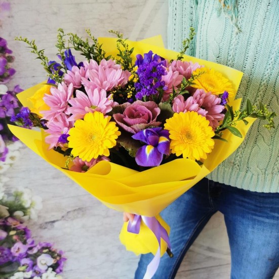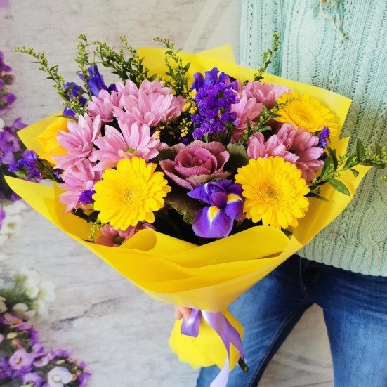 Очень красиво оформленный букет, сестра-именинница в восторге) А на ее страничке Инстаграма цветы произвели настоящий фурор)))