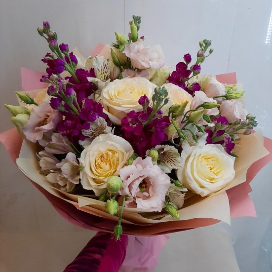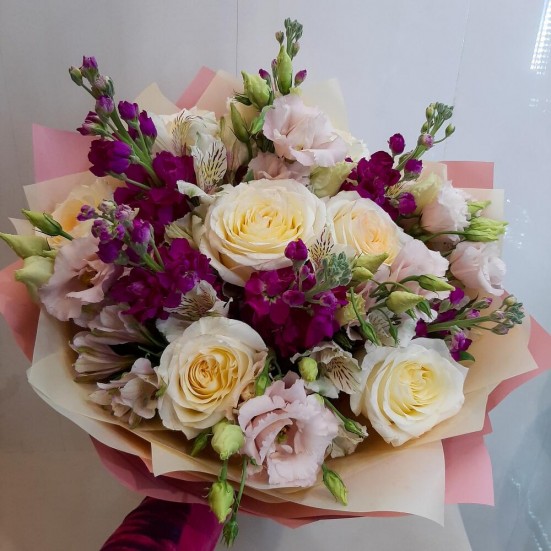 Решил внезапно приятно удивить супругу пока она на работе. Заказал ей тут букет прям на работу. Курьер доставил во время. Жена пришла домой счастливая с шикарным букетом.