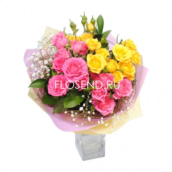 Букет «5 кустовых роз и гипсофила» в Костроме