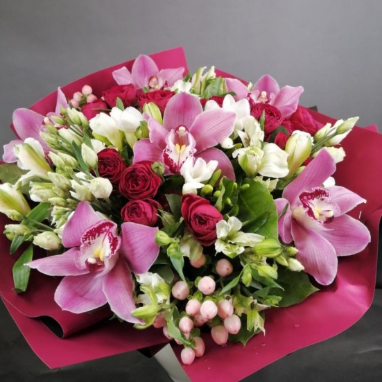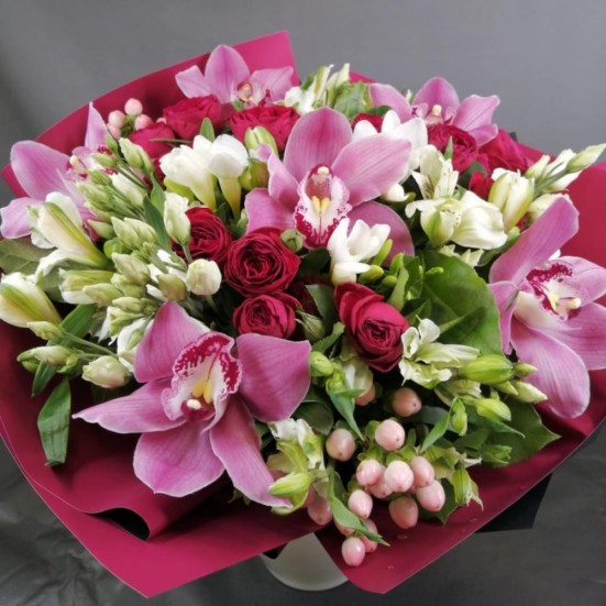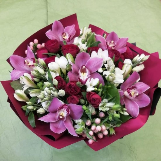 Решил внезапно приятно удивить супругу пока она на работе. Заказал ей тут букет прям на работу. Курьер доставил во время. Жена пришла домой счастливая с шикарным букетом.