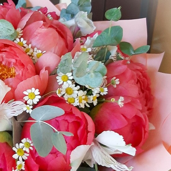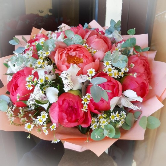 Букет «Пионы и ромашки»