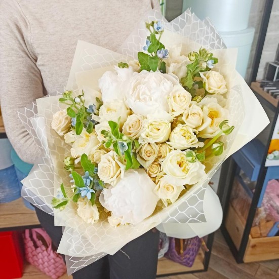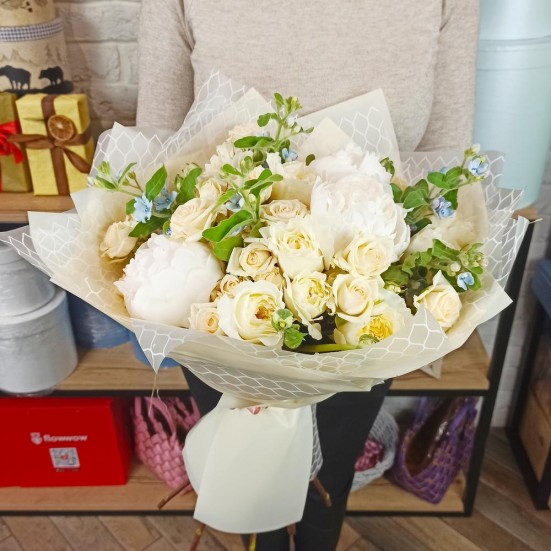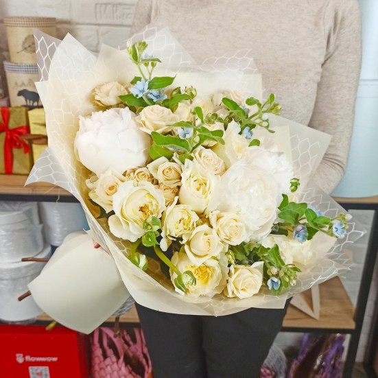 Решил внезапно приятно удивить супругу пока она на работе. Заказал ей тут букет прям на работу. Курьер доставил во время. Жена пришла домой счастливая с шикарным букетом.