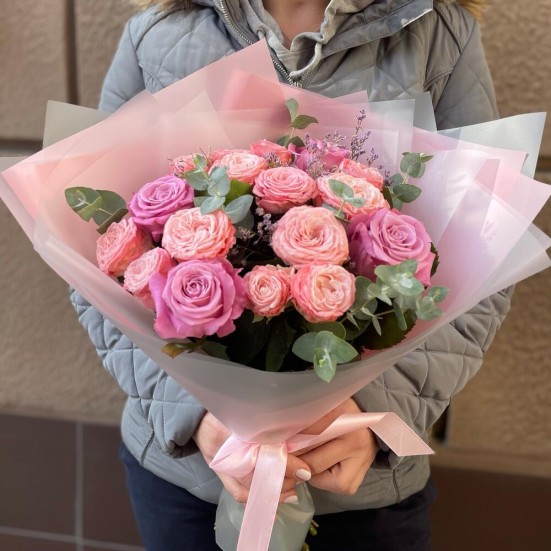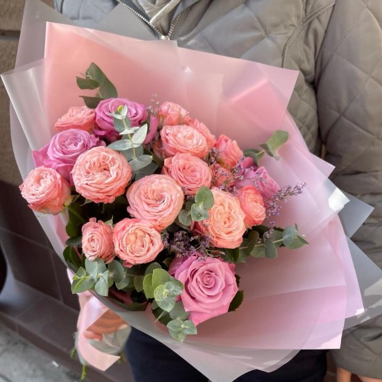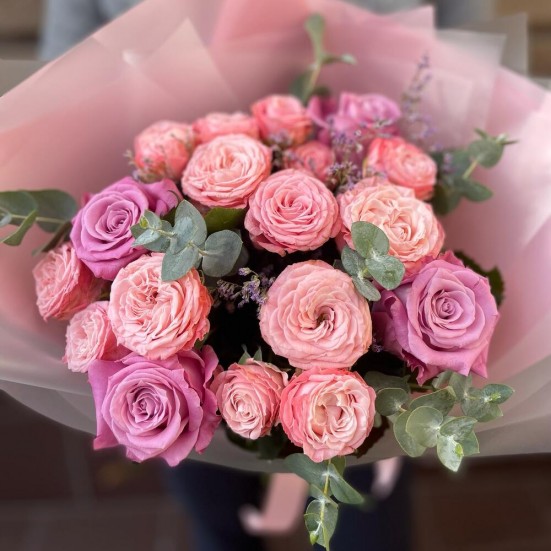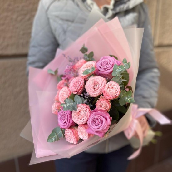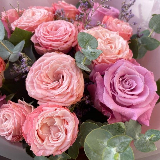 Букет «Пионовидных роз с эвкалиптом»