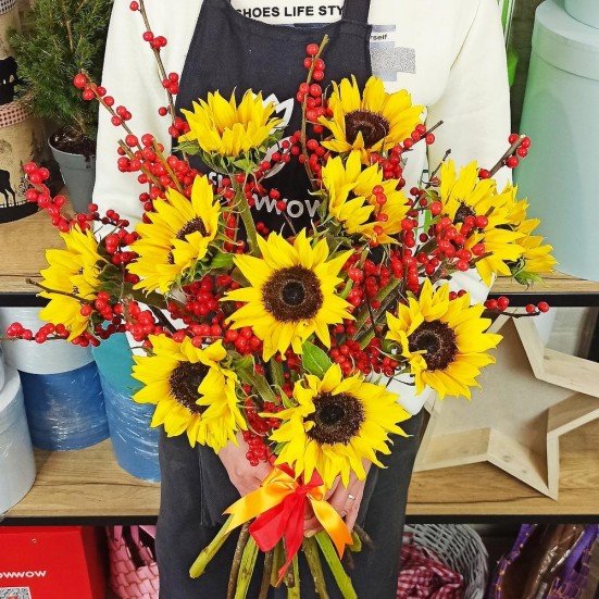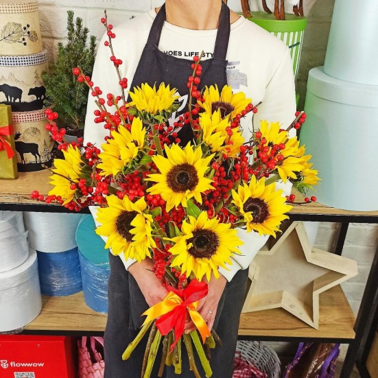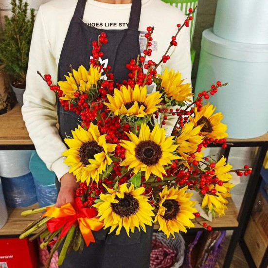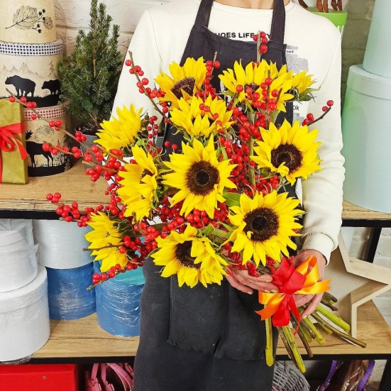 Решил внезапно приятно удивить супругу пока она на работе. Заказал ей тут букет прям на работу. Курьер доставил во время. Жена пришла домой счастливая с шикарным букетом.