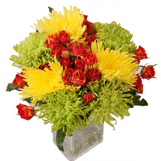 Букет «Одноголовых хризантем и кустовых роз» в Костроме
