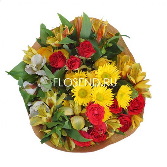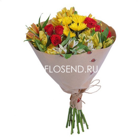 Букет из хризантем и кустовой розы и альстромерий в Костроме