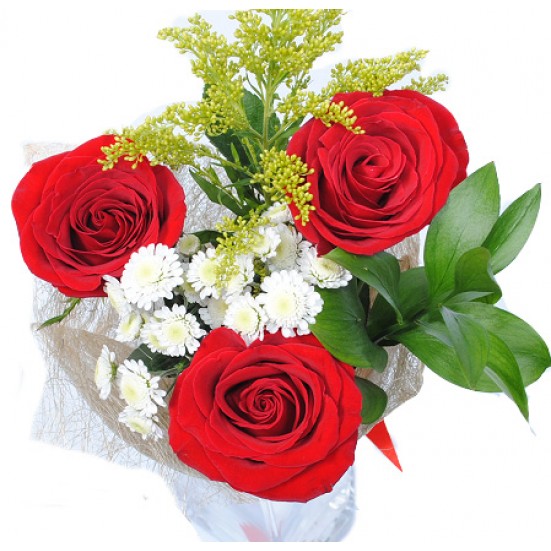 Букет «3 красных роз и 2 белых хризантем»